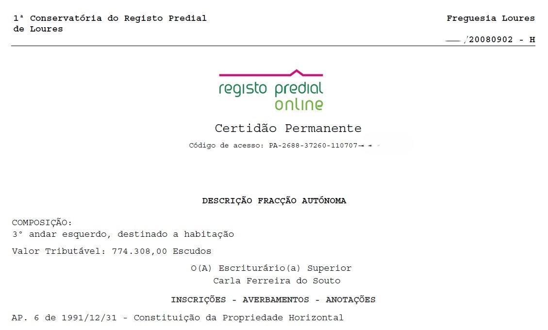 Certidão Permanente Predial: